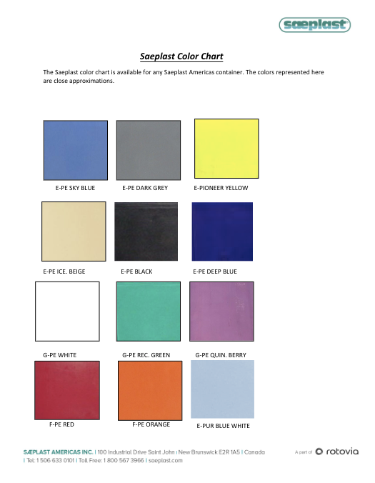Color Chart – Americas – PE and PUR