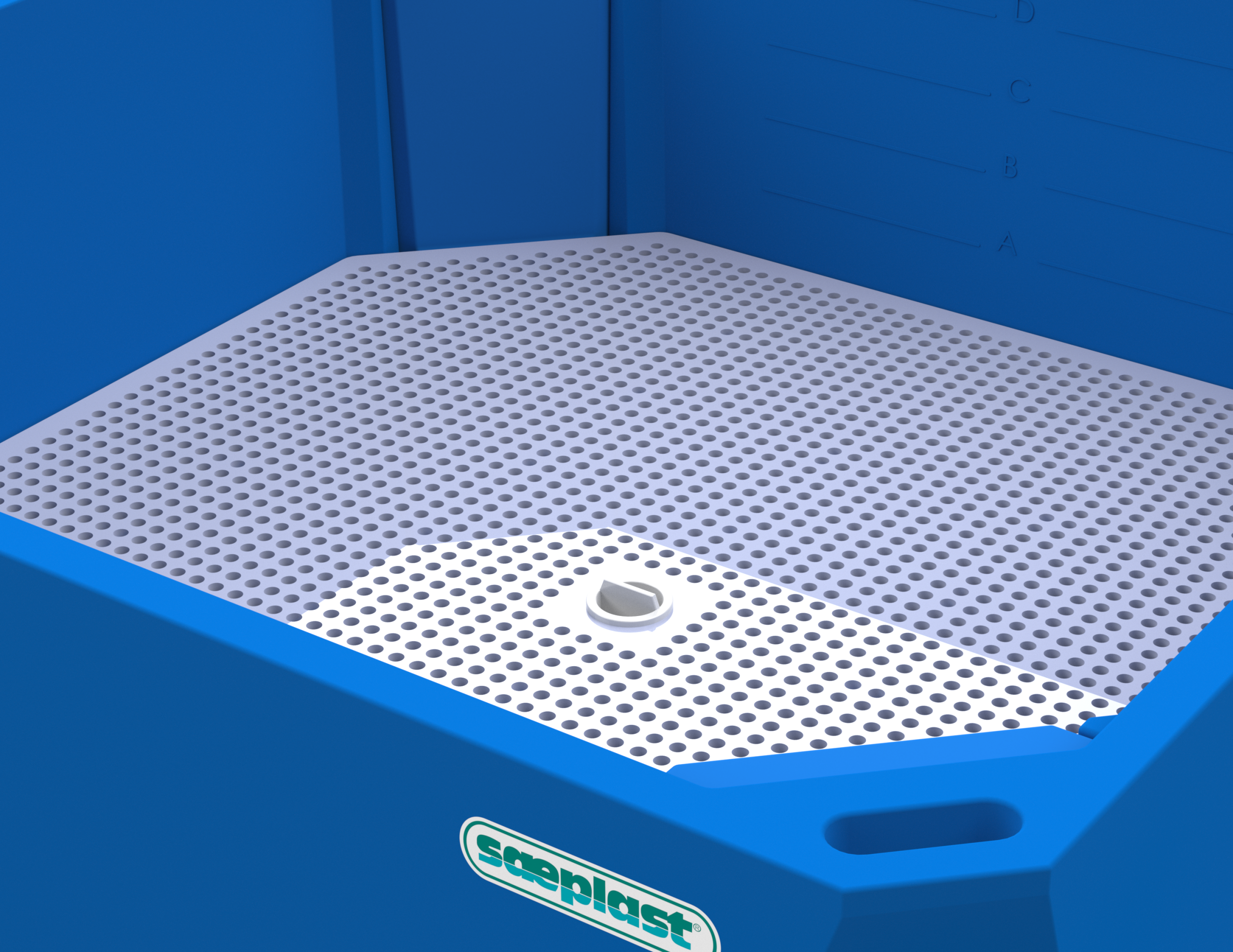 Engraved markings ensure individual container identification. Engraved markings are long-lasting and are etched into the outside skin of the container. Many customers choose to have serial numbers, company name, factory location or other information engraved onto their Saeplast tubs.