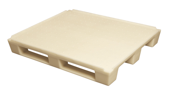 The SÆPLAST A-109 pallet is tough and long-lasting. It is crafted from durable, hard-wearing polyethylene and filled with a PUR core. SÆPLAST pallets are the ideal solution for withstanding harsh conditions, rough handling, extremes of temperature and frequent wash-down sessions. It is particularly well suited for low to medium quantity in internal or closed loop handling applications. Temperature tolerance ranges from -30°C to +60°C. The pallet is a one piece design, hygienic with no cavities or holes that can contain bacteria.